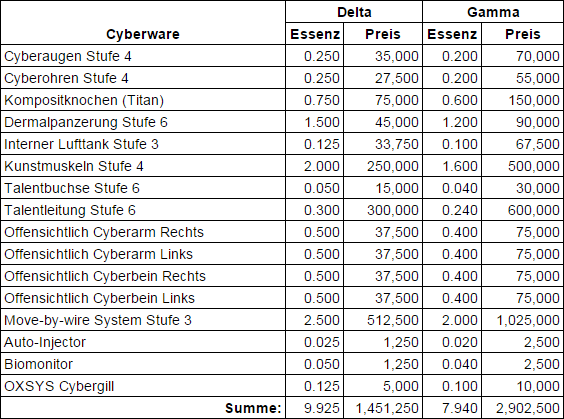 Was benötigt man um einen Cyberzombie herzustellen? Zuerst braucht man eine Deltaklinik, da nur in dieser Cyberware, mit der Qualitätsstufe Delta, chirurgisch implantiert werden kann. Das gleiche sollte auch mit der Qualitätsstufe Gamma funktionieren. Als zweite Voraussetzung braucht man spezialisierte Magier, die während der Operationen mit komplizierten magischen Ritualen die Seele/den Geist an den Körper binden. Dieser Prozess wird auch Cybermantie genannt. Die bekannte Grenze für das Prozedere liegt bei einem Essenzwert von -6.